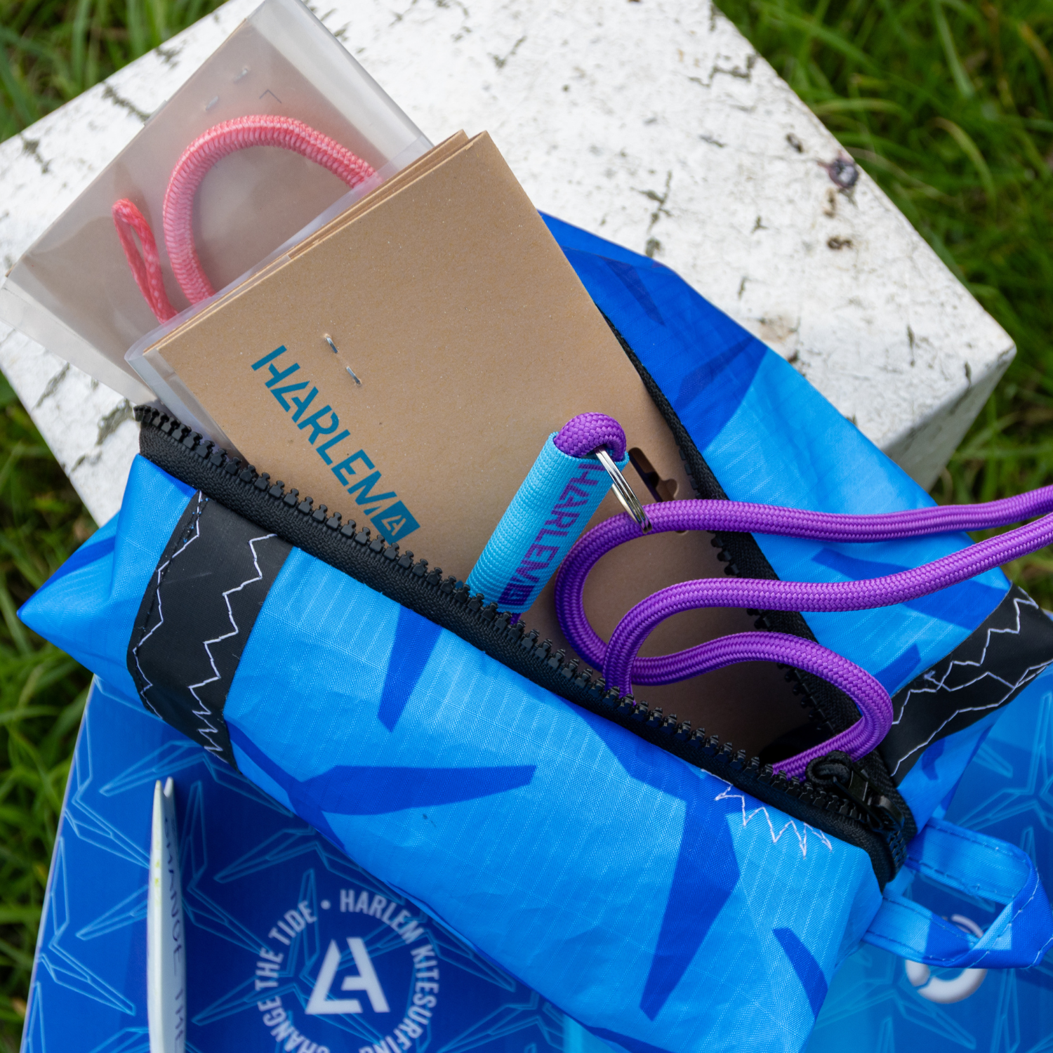 And when it’s done flying… its journey isn’t over. The Harlem Upcycled Collection gives our old kites and prototypes a second life. Each piece is handcrafted by Louise Hadlow — yes, Aaron Hadlow’s mum — who transforms retired high-performance kites into one-of-a-kind everyday companions.